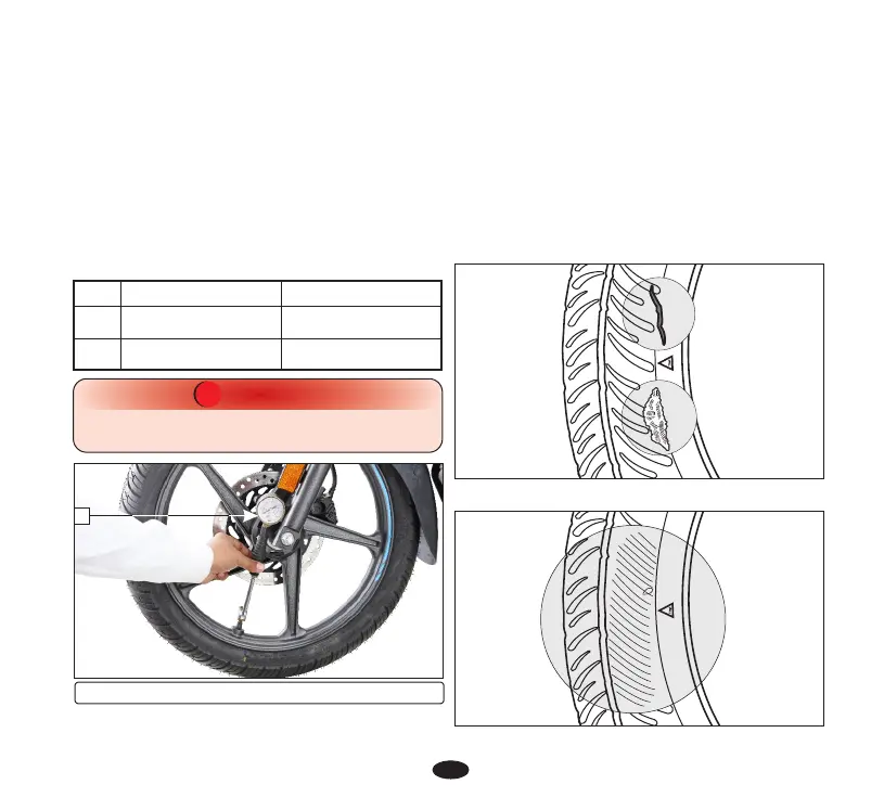 the tread. Replace the tyre if you find any