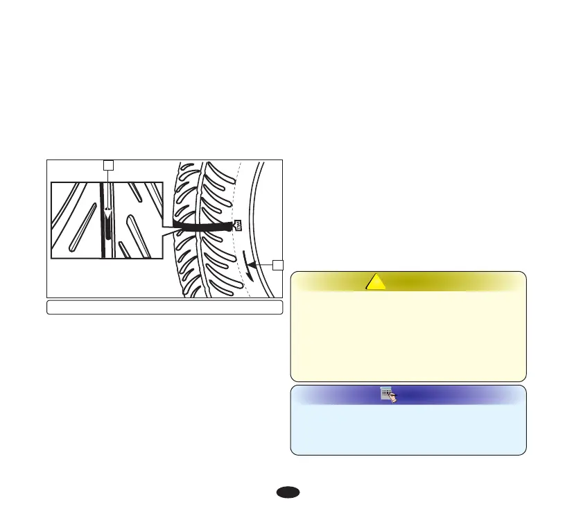 wear indicator (1) appears on the tyre. The