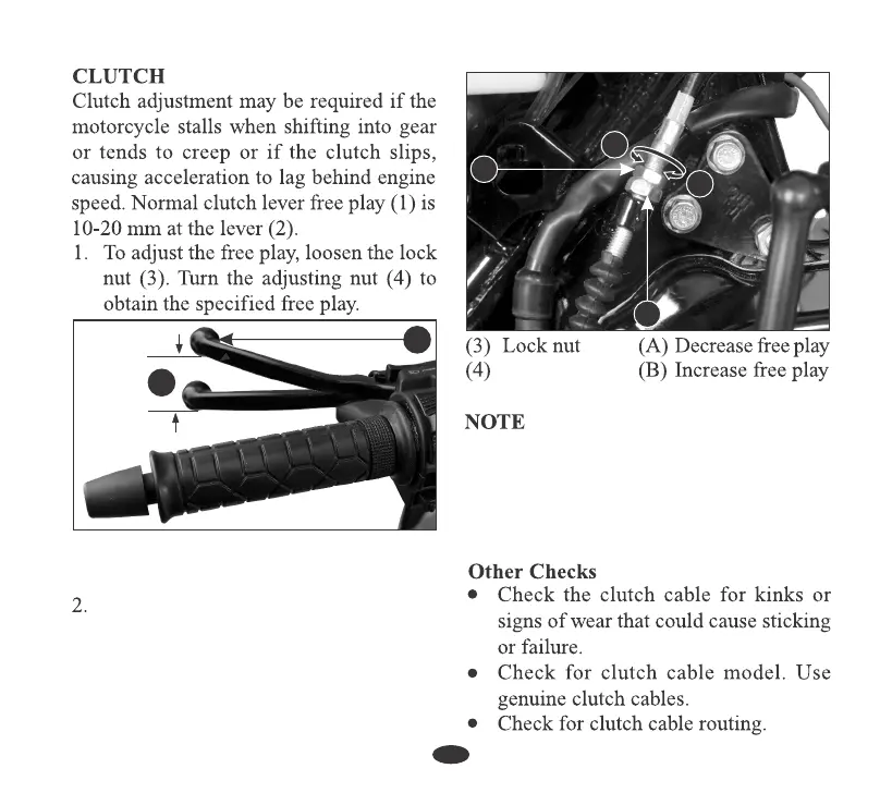 (1) Free play 10-20 mm (2) Clutch lever