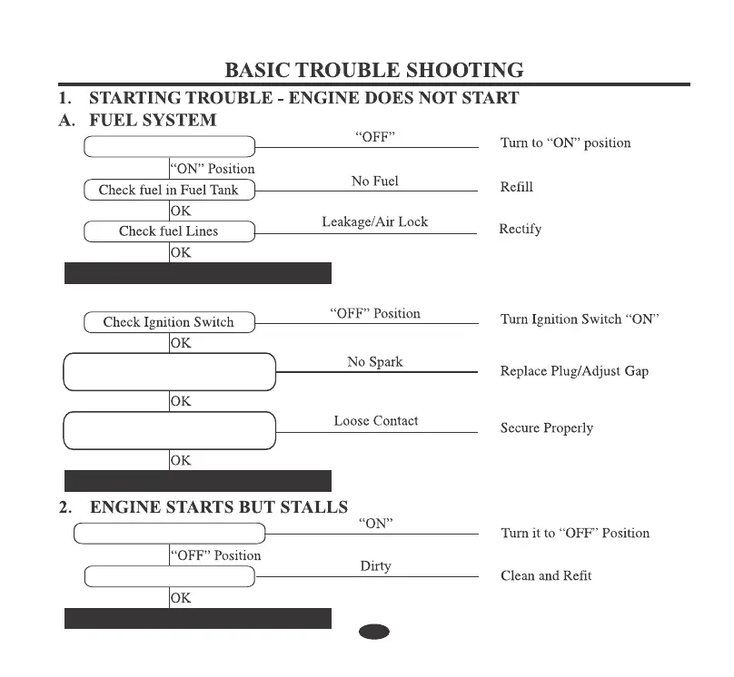 B. NO SPARK AT SPARK PLUG