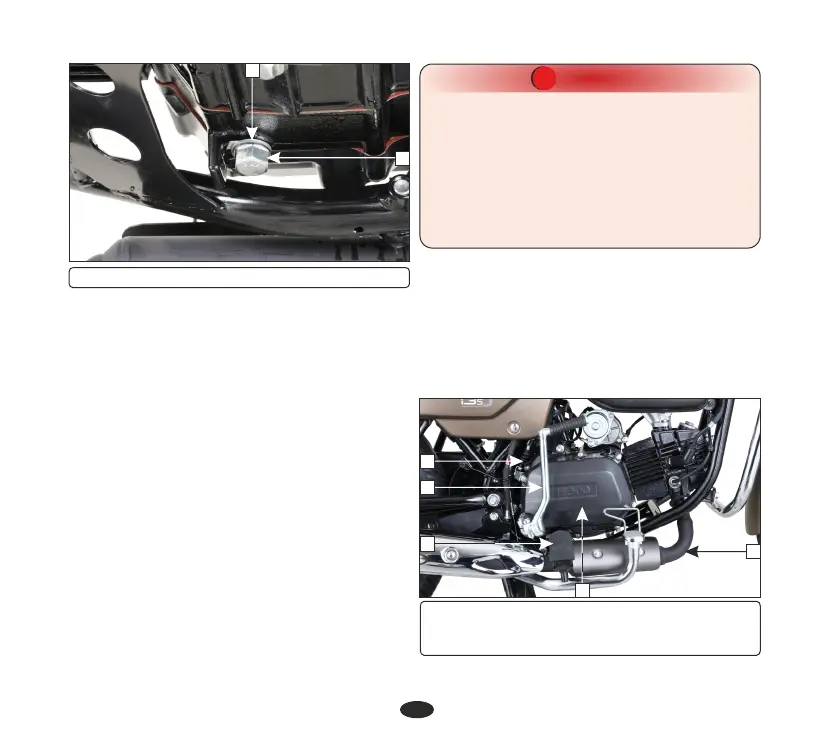 (1) Kick starter pedal (2) Muffler
