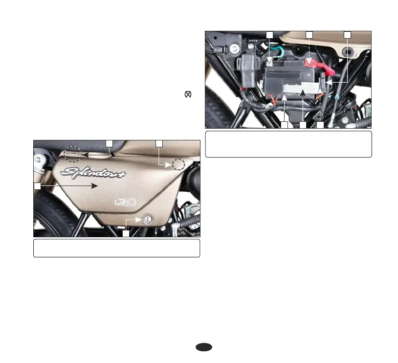 Fuse box : (A) Mounted on the battery