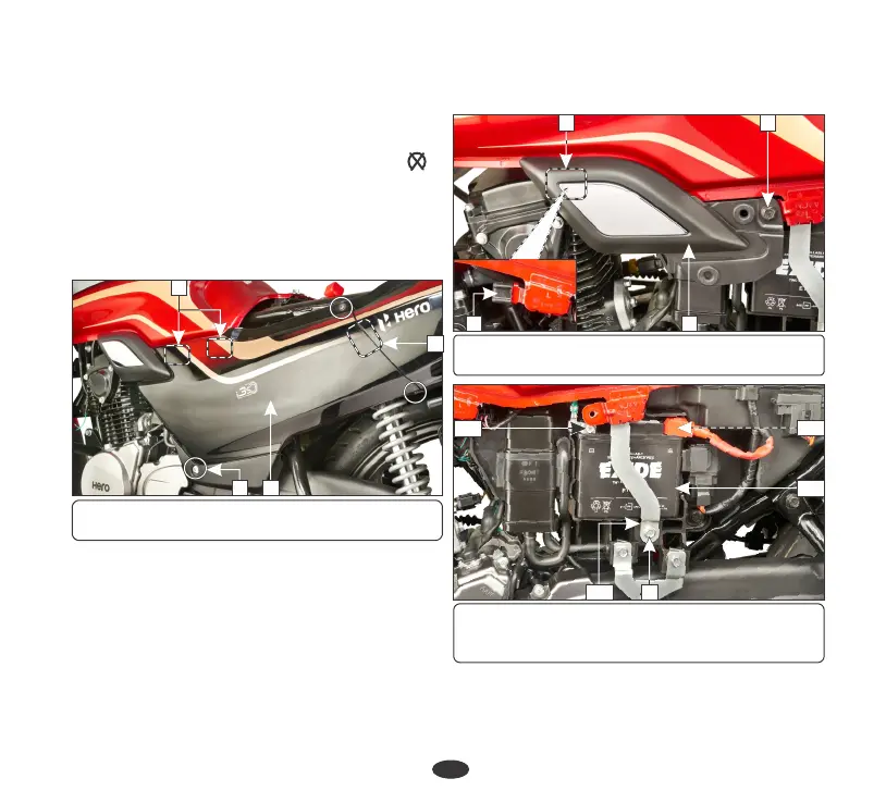 (6) Fuel tank left side cover (7) Tab (8) Slot