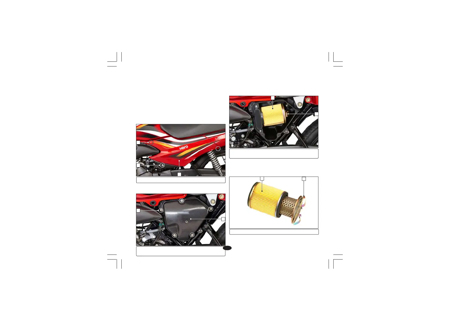 Ÿ Remove the air cleaner cover screws (4) and
