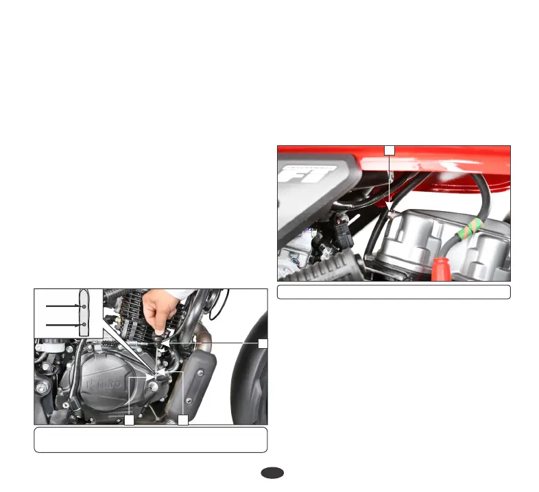 Ÿ Slightly loosen the engine oil check bolt (4)