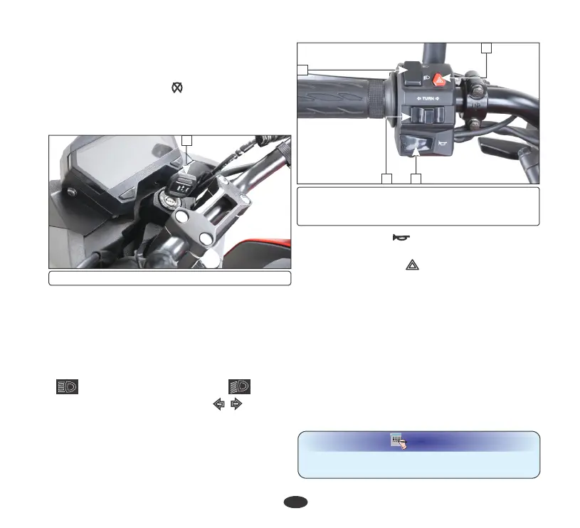 Press the switch to operate the horn (3).