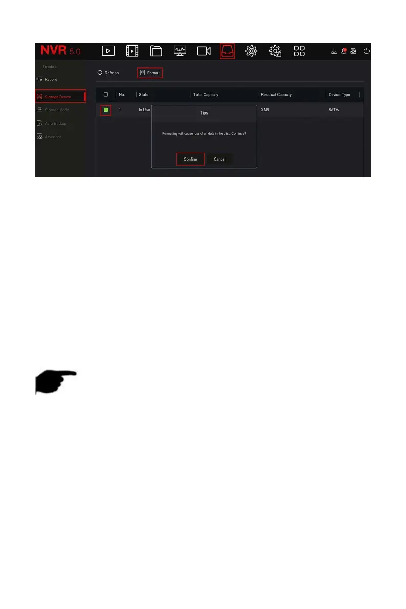After formatting the hard disk, restart the NVR to takes effect.