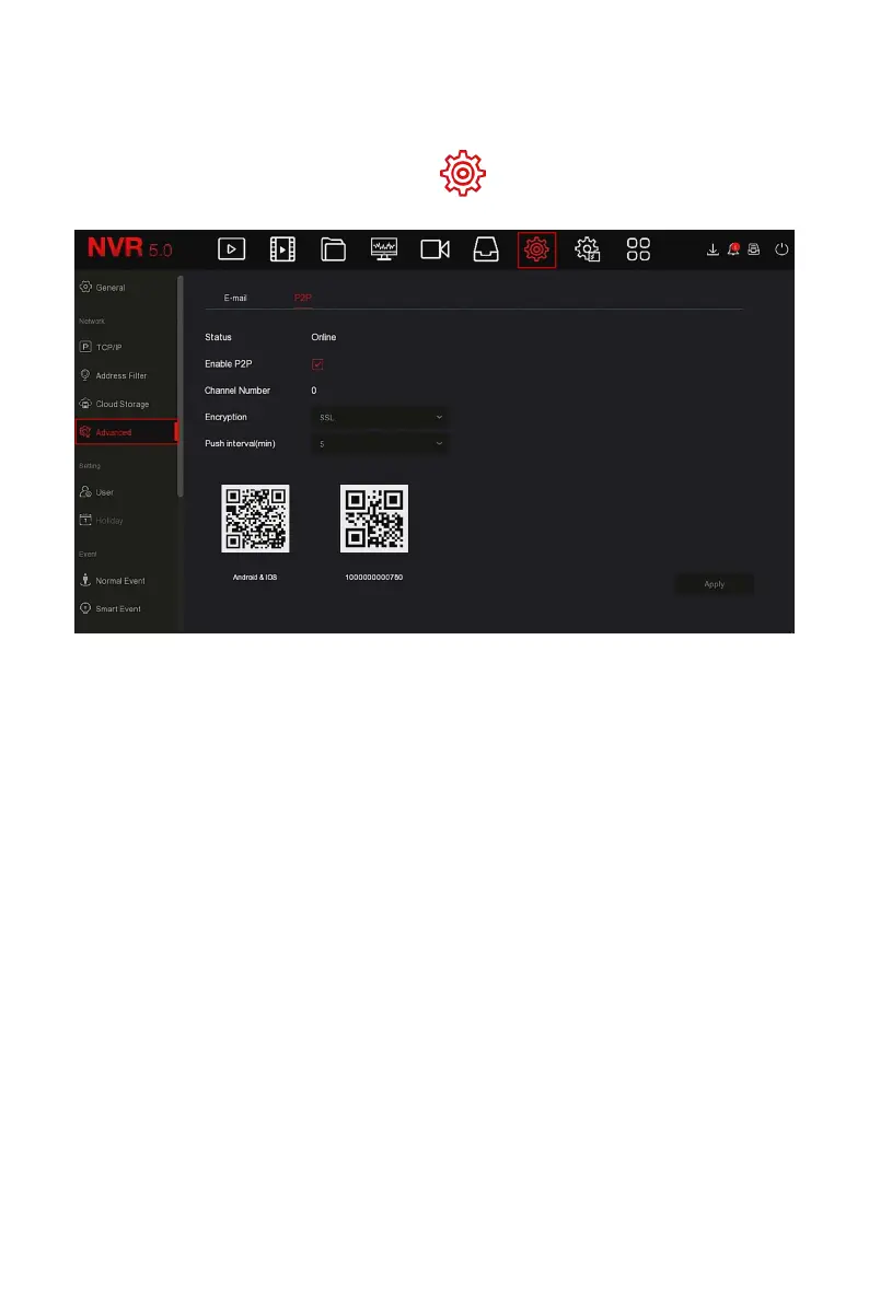 Step 1: On the main menu page, click " → Advanced→ P2P" to enter the