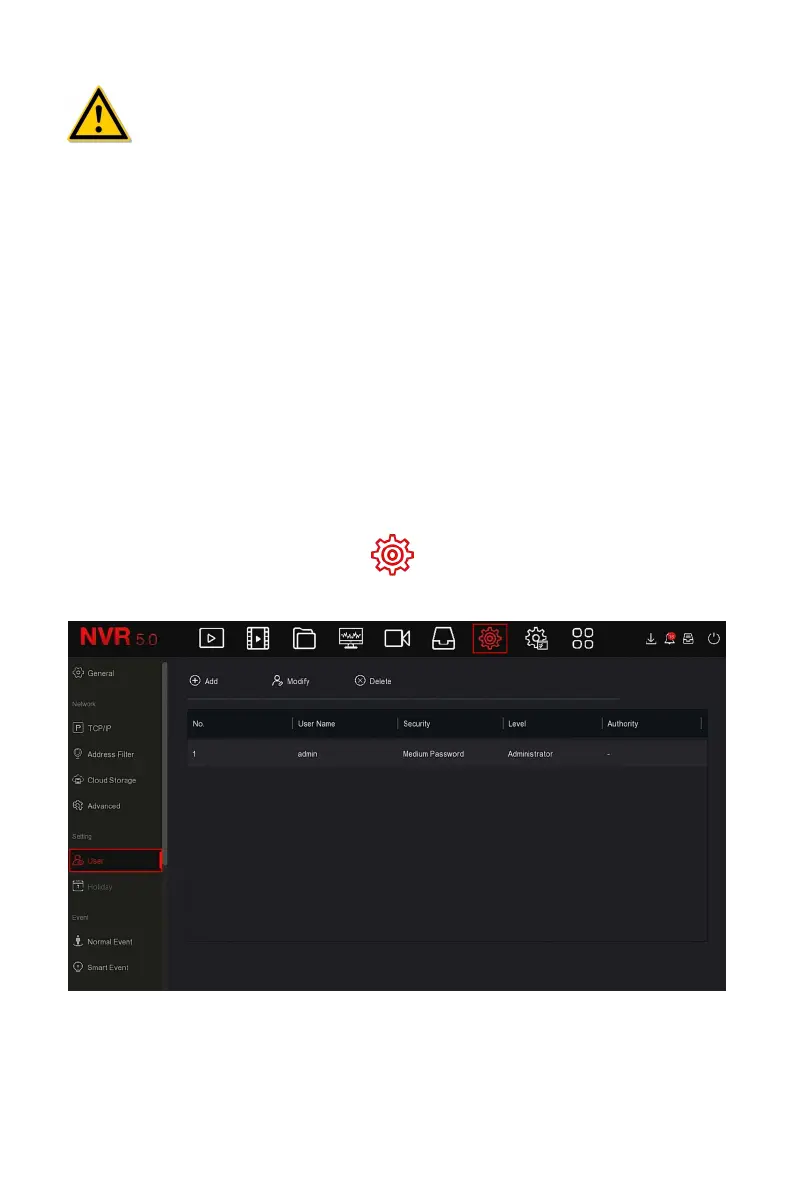 Step 1: In the main menu, choose " →User" to enter User interface, as