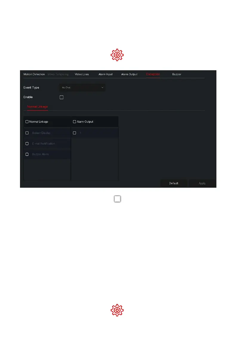 Steps 2: Select the event type, click " " to enable the exception alarm