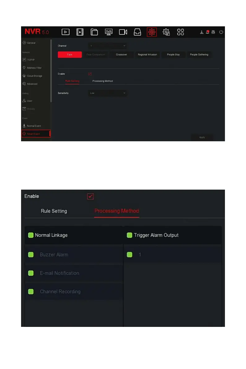 Steps 4: Click "Processing Method" to set the alarm linkage as required