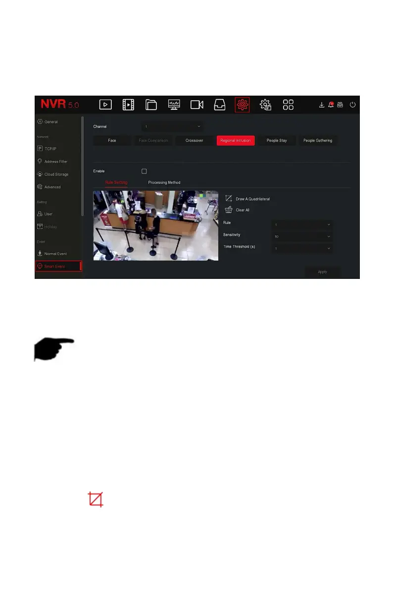 Steps 3: Click "Enable→Rule Setting", to set the rule of regional intrusion,