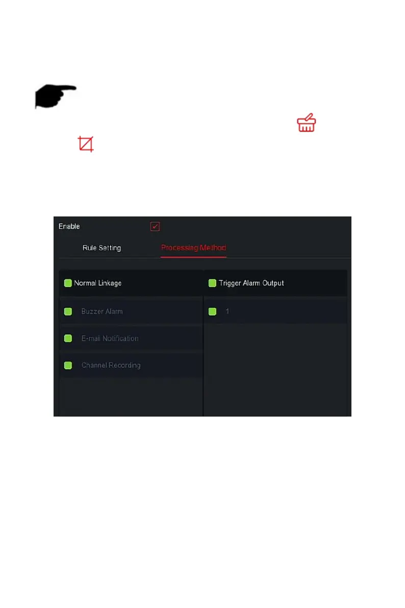 Steps 4: Click "Processing Method", set alarm linkage as required (Buzzer,