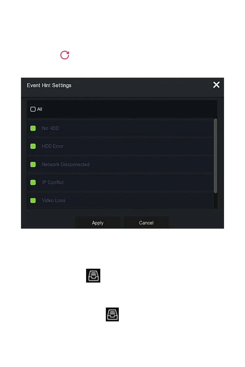 Steps 3: Click " Set" to enter "Event Hint Setting" interface, abnormal