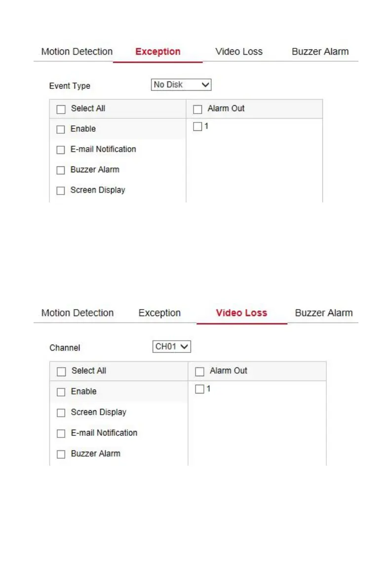 Here you could enable channel video loss and set the corresponding alarm