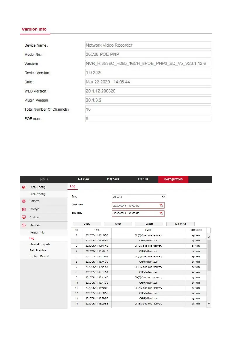In the main interface, click "Configuration →Maintain →Log" to enter the log