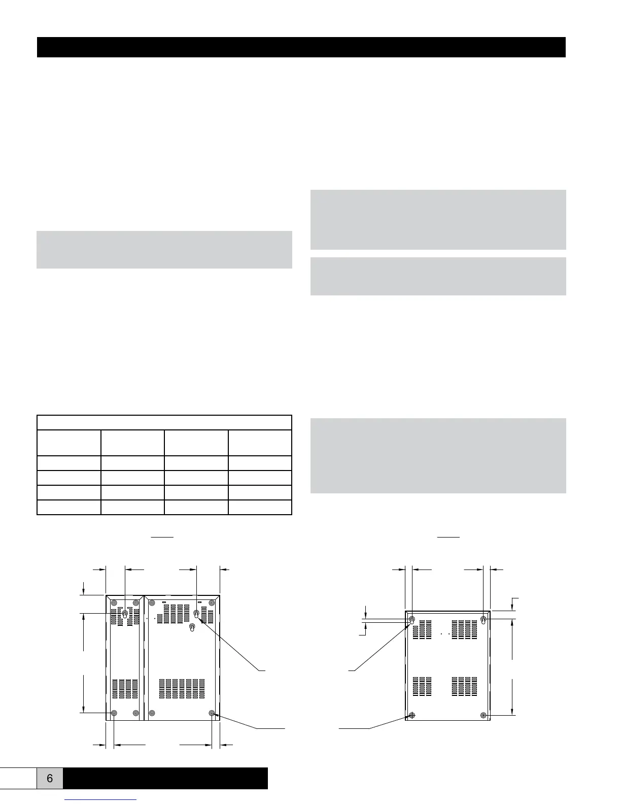 two lag bolts (1/4”) and secure all four bolts. Be sure the unit is