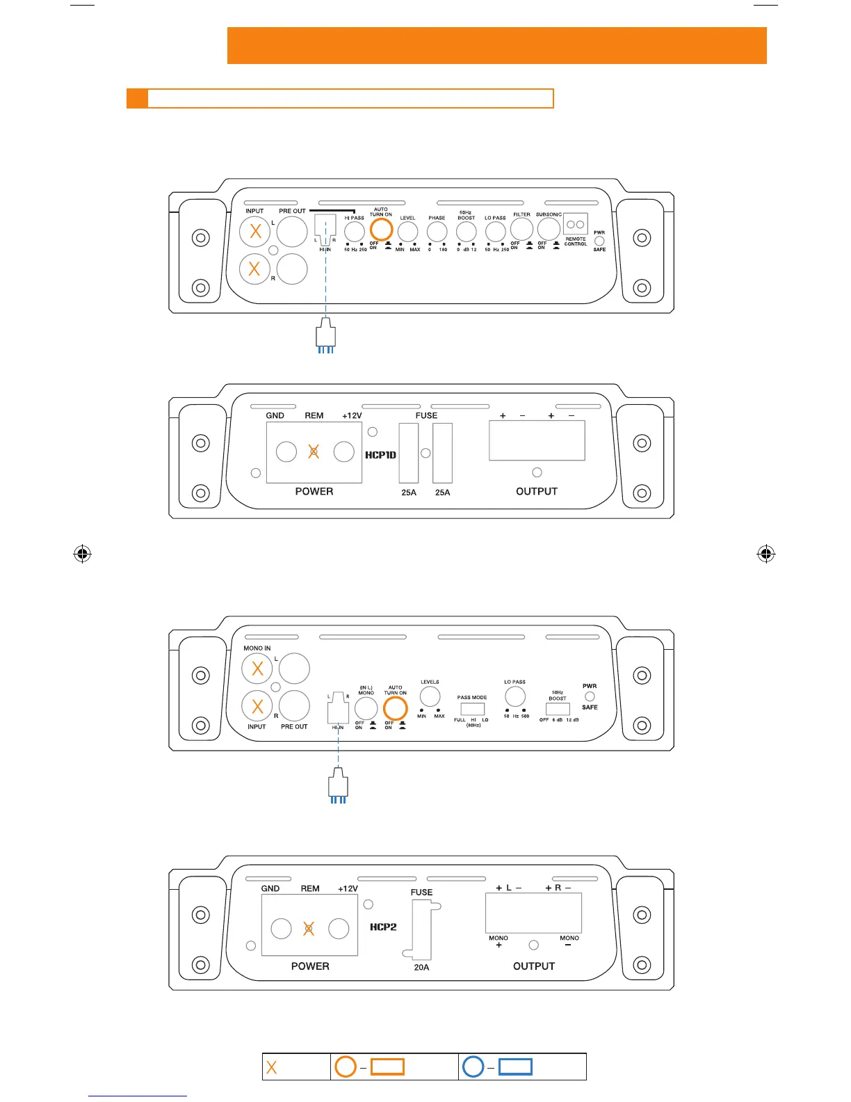 Hertz AMPLIFIER - Auto Turn-On by Speaker In (without Remote In); HCP 1 D Auto Turn-On Setup; HCP 2 Auto Turn-On Setup