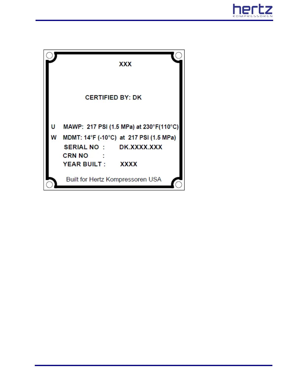 Hertz HDD 75 - Plate on the Oil Tank (with ASME)