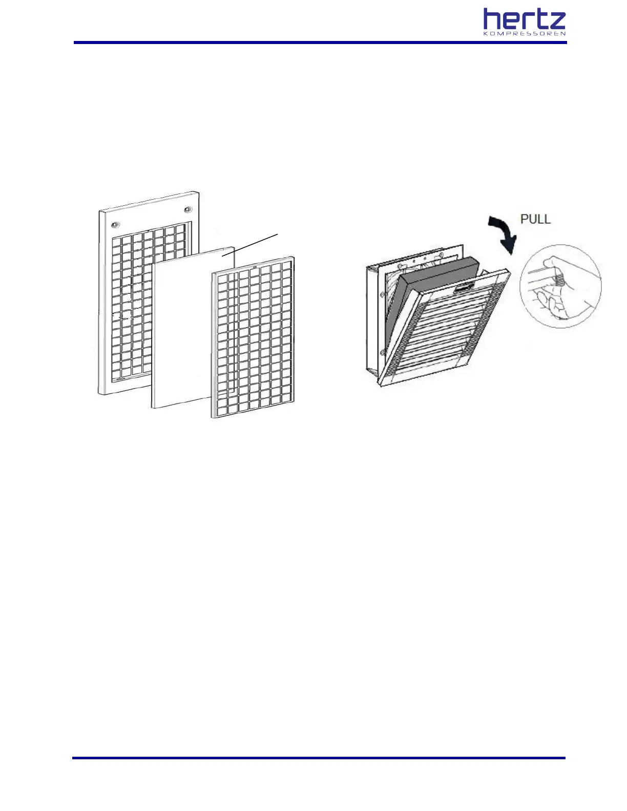 • Insert the new filter element into the louver grille. Ensure that the smooth side of the filter elemet