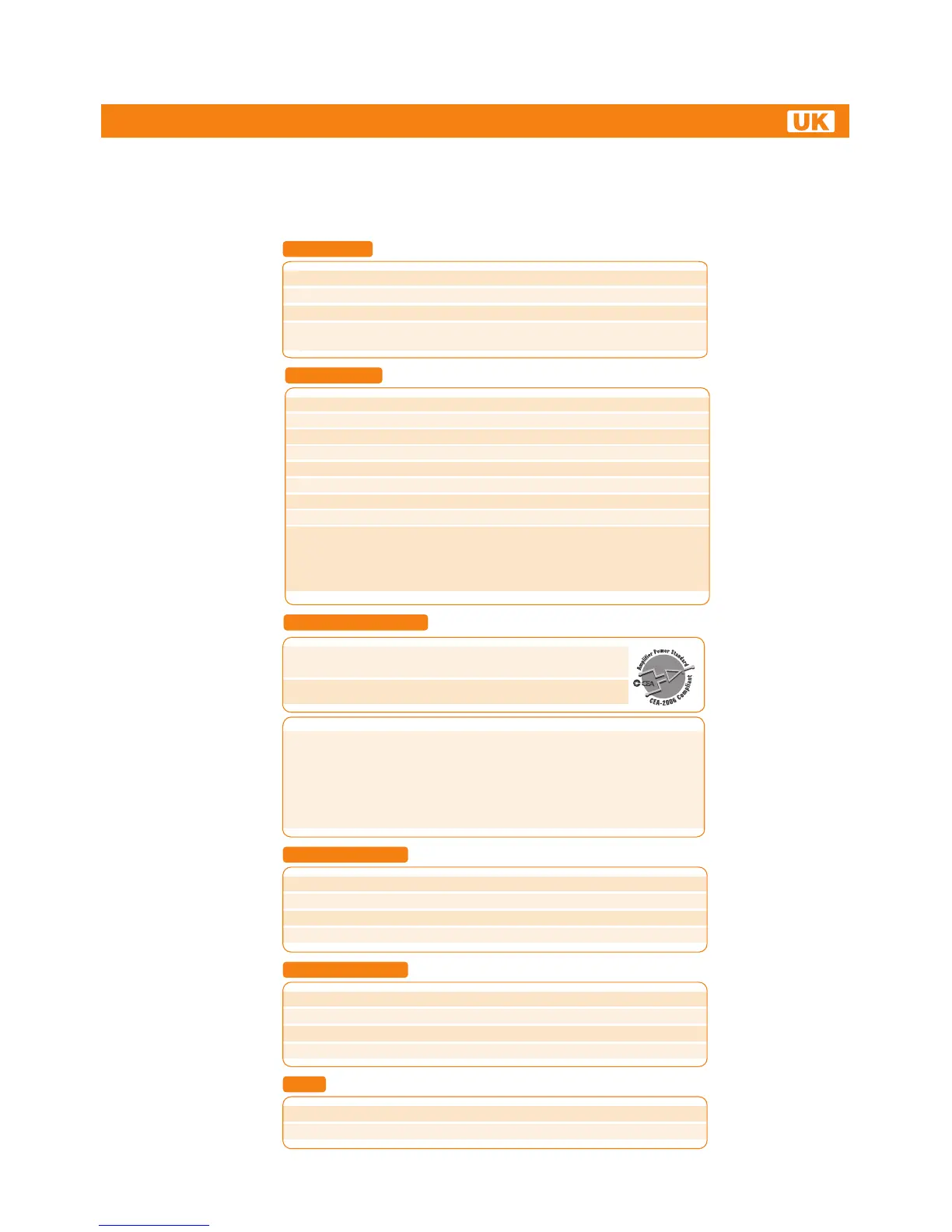 RMS Power (4 Ω, ≤ 1 % THD+N, 14.4 V): 120W x 4Ch