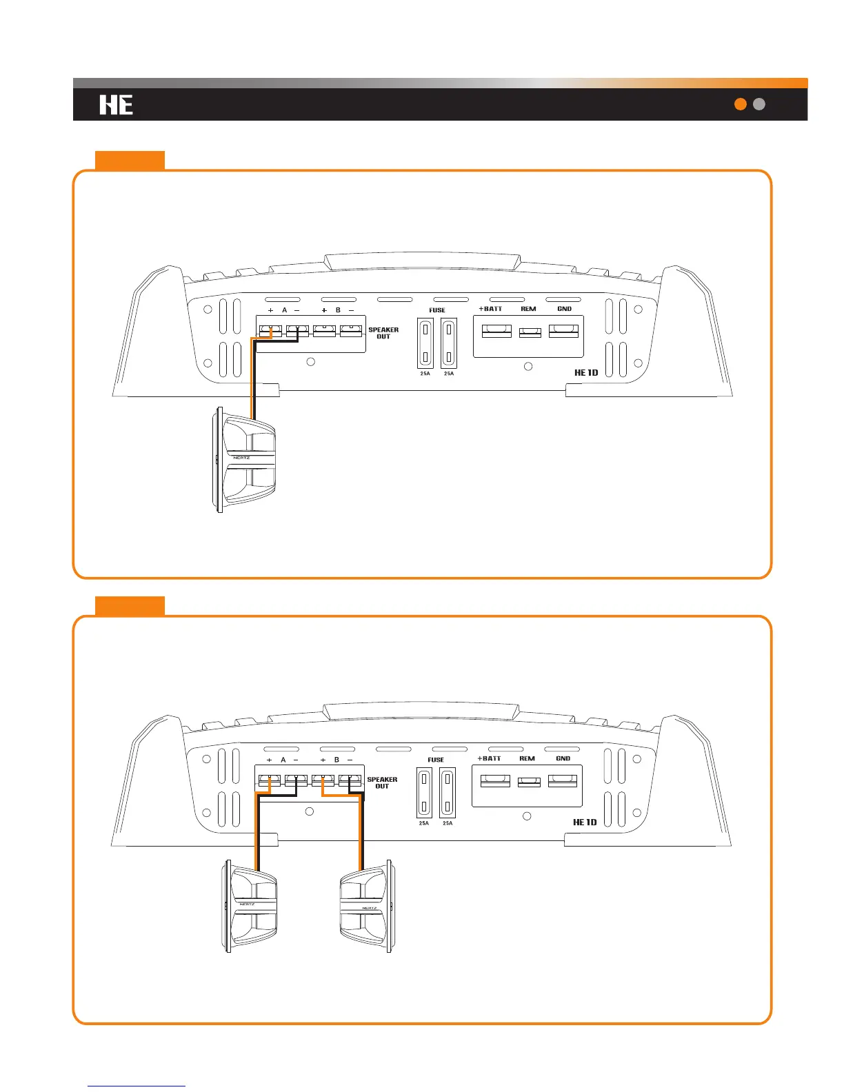 Hertz HE 1D - Amplifier Outputs; Single Subwoofer Output; Double Subwoofer Parallel Output