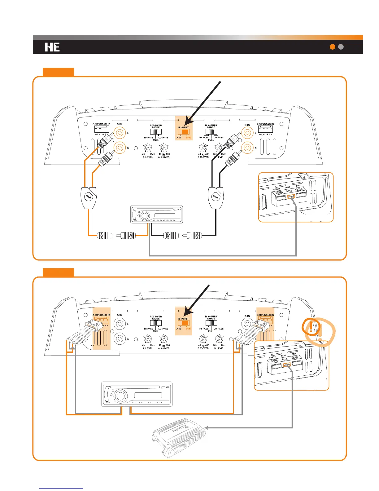 Hertz HE 4 - Inputs: PRE IN Mono (2 Ch Mode) Configuration; Inputs: SPEAKER IN Mono (2 Ch Mode) Configuration