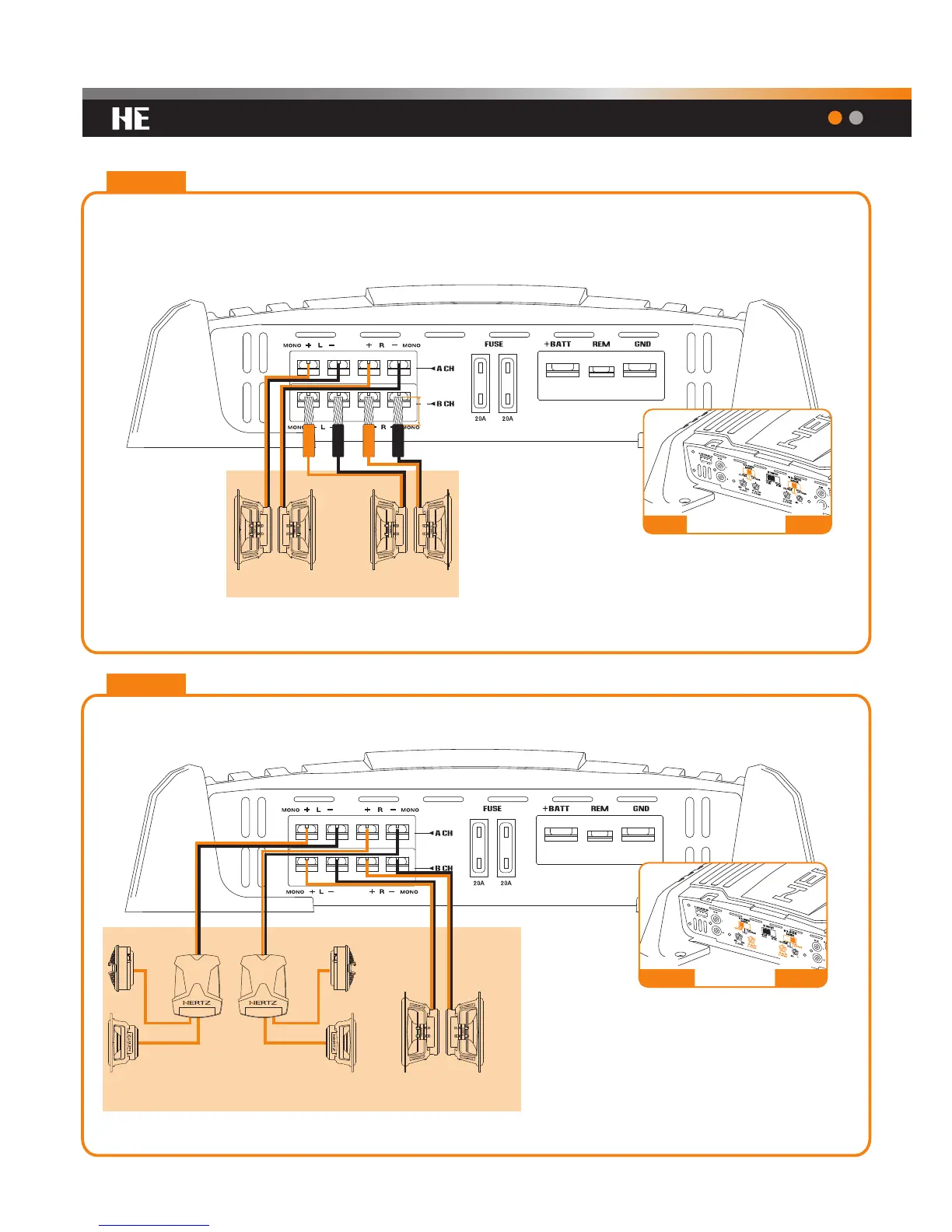Hertz HE 4 - Outputs: 4 Channels Mode - Front; Rear; Outputs: 4 Channels Mode - Multichannel