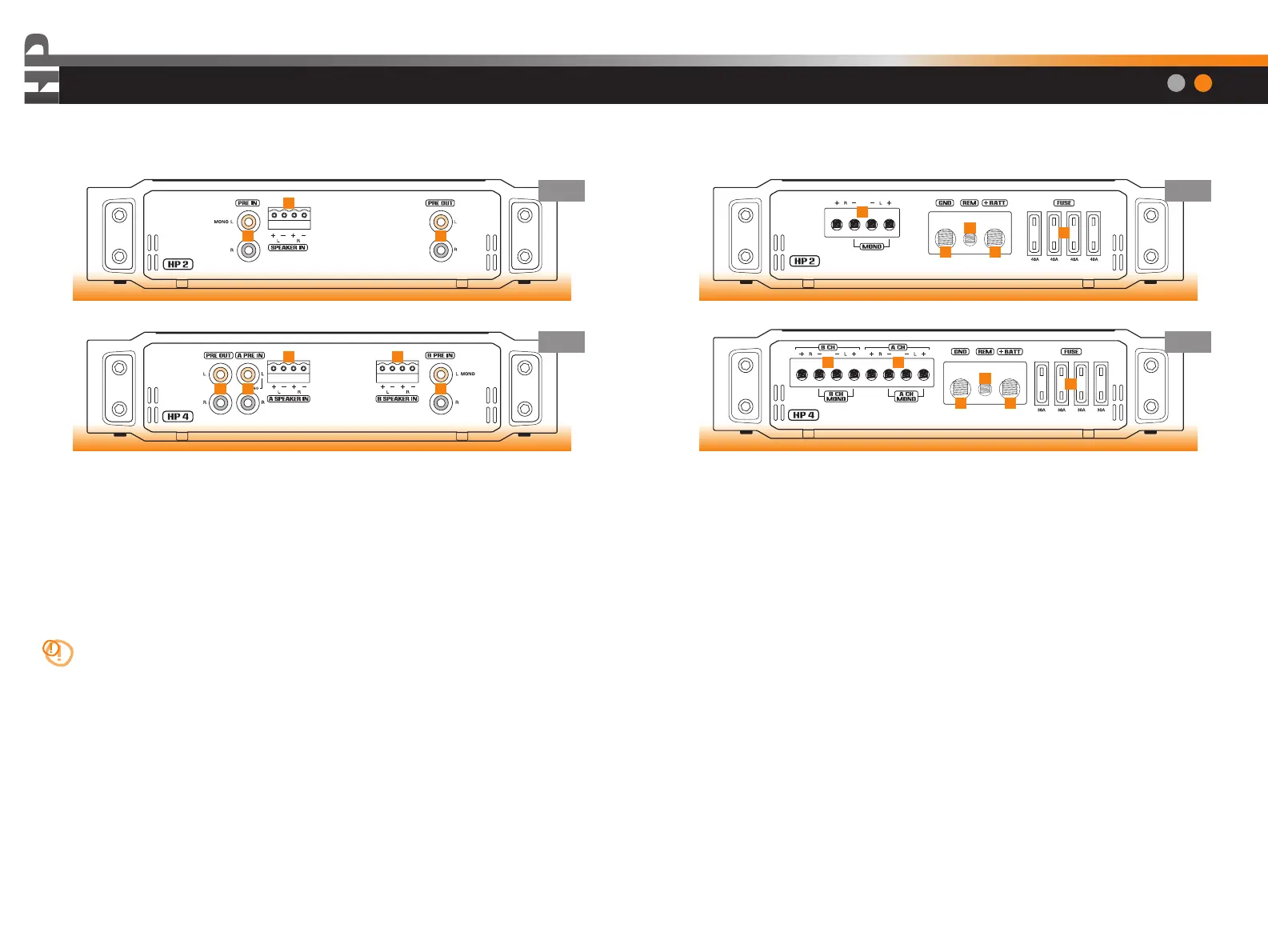 from the head unit amplified section. When using HP 4 in mono mode use only Left input.