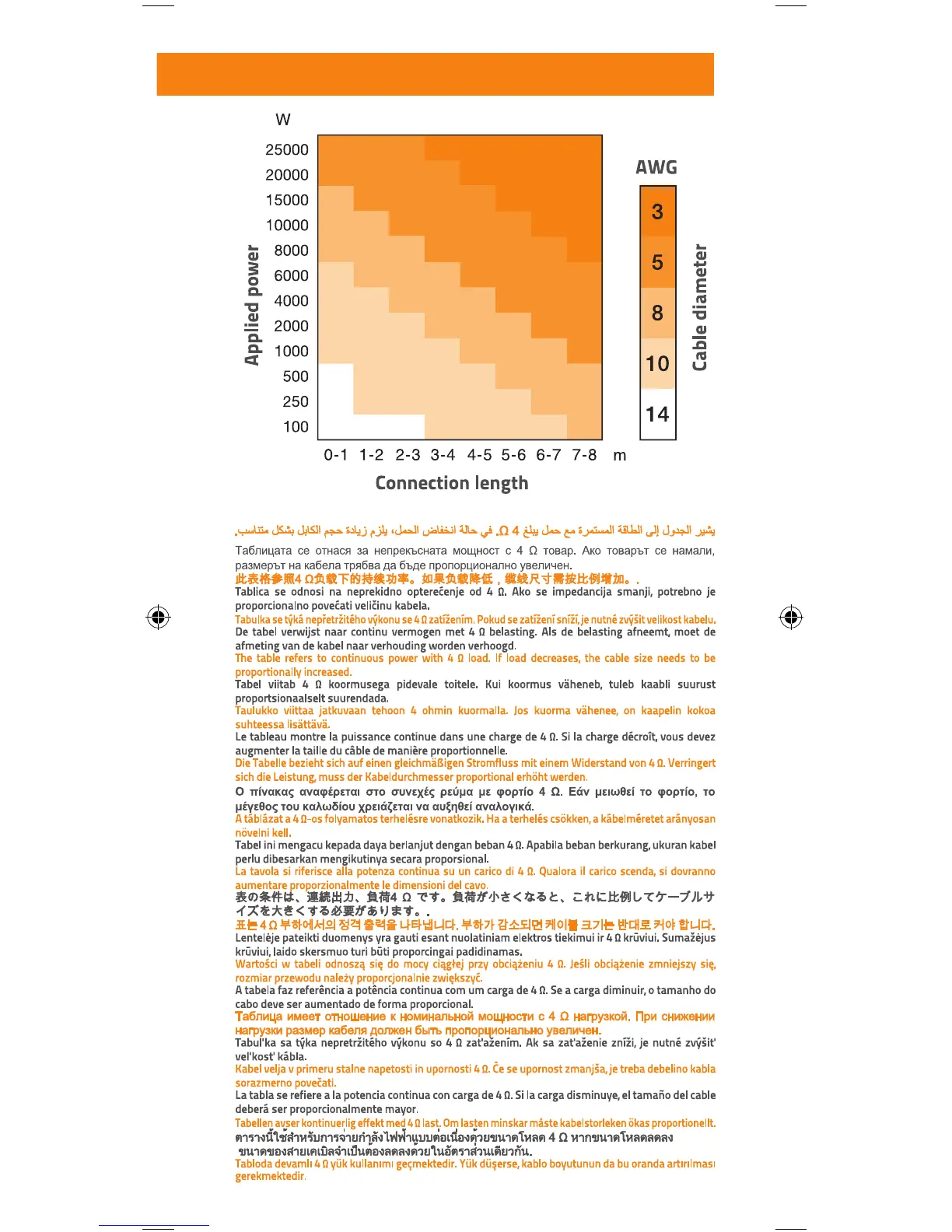 Hertz Mille - Recommended Cable Diameter vs. Power and Length
