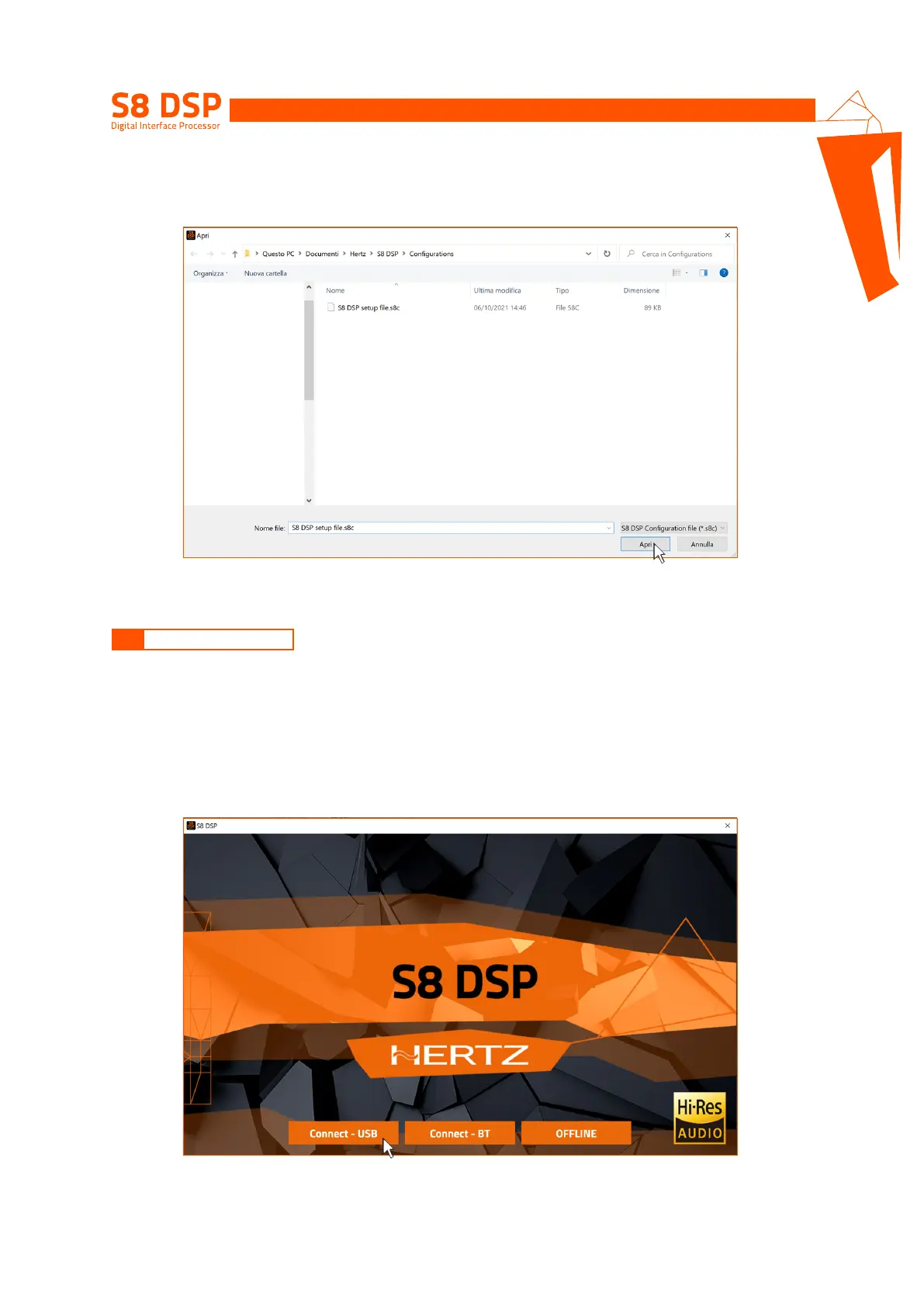 between PC/MAC and S8 DSP can be established via USB cable or Bluetooth.