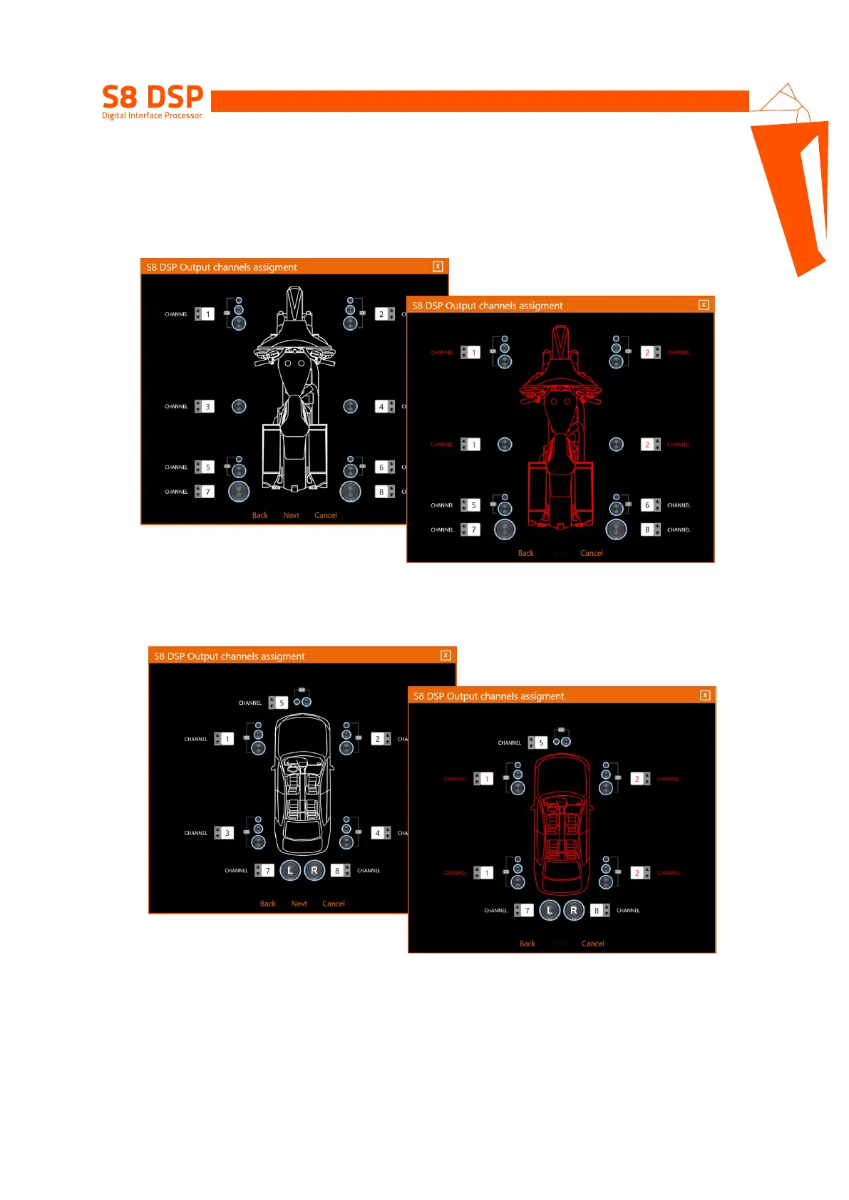 In Motorcycle or Car mode it is possible to change the order in which the outputs of the S8 DSP have been