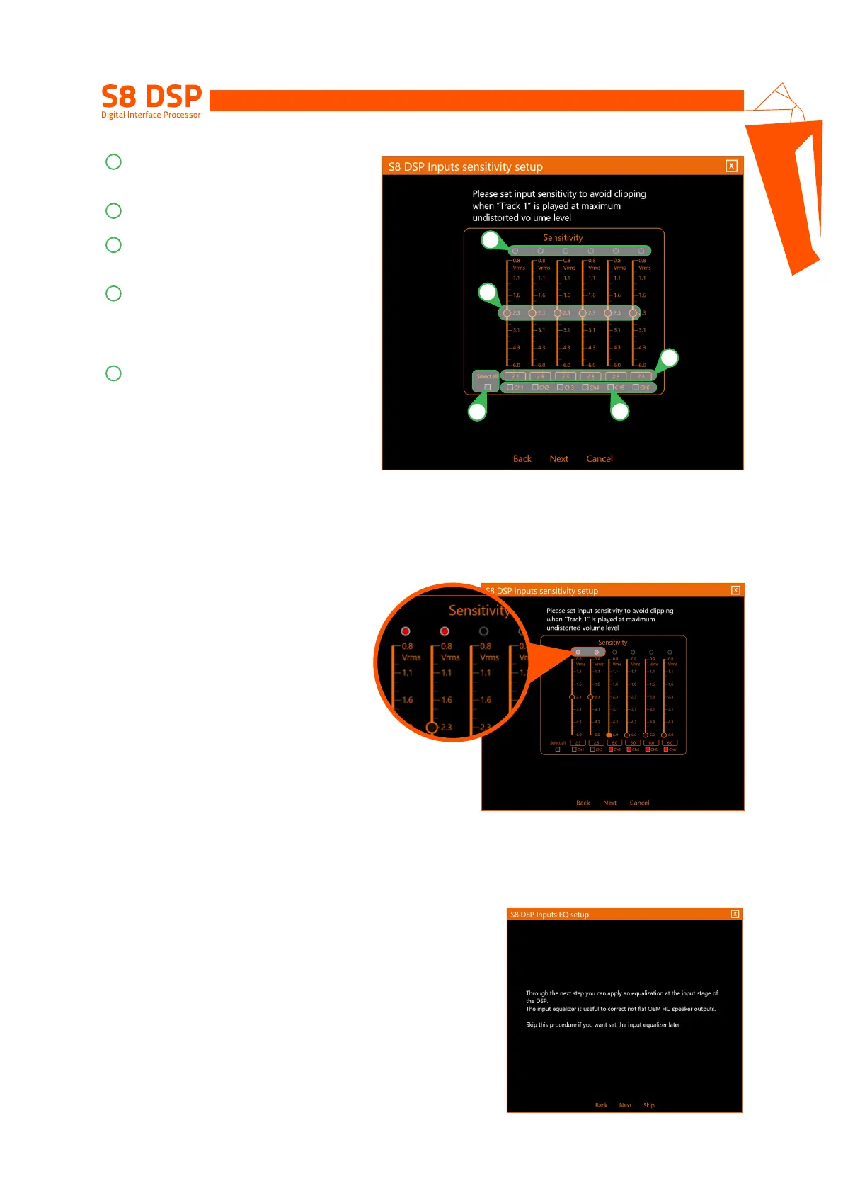 sensitivity levels of the inputs of the S8 DSP