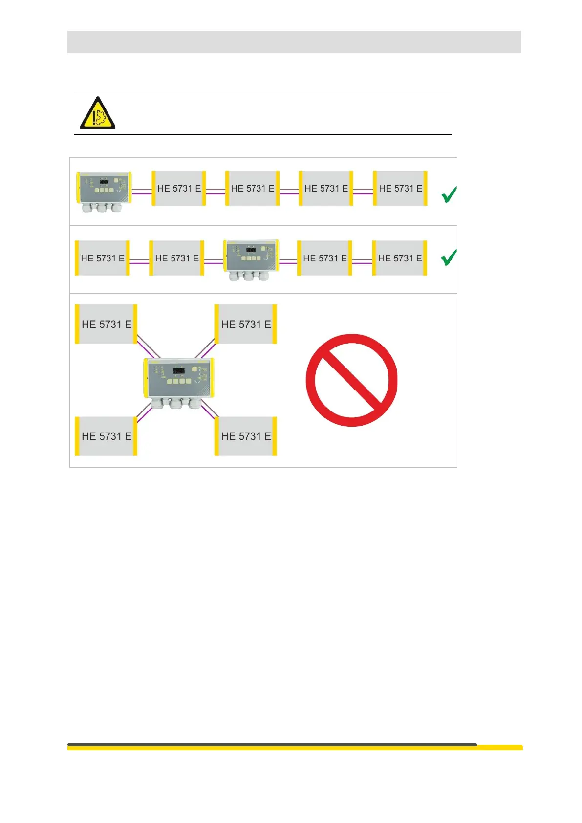 Having a star-formed cabling or branches of the serial connection is not