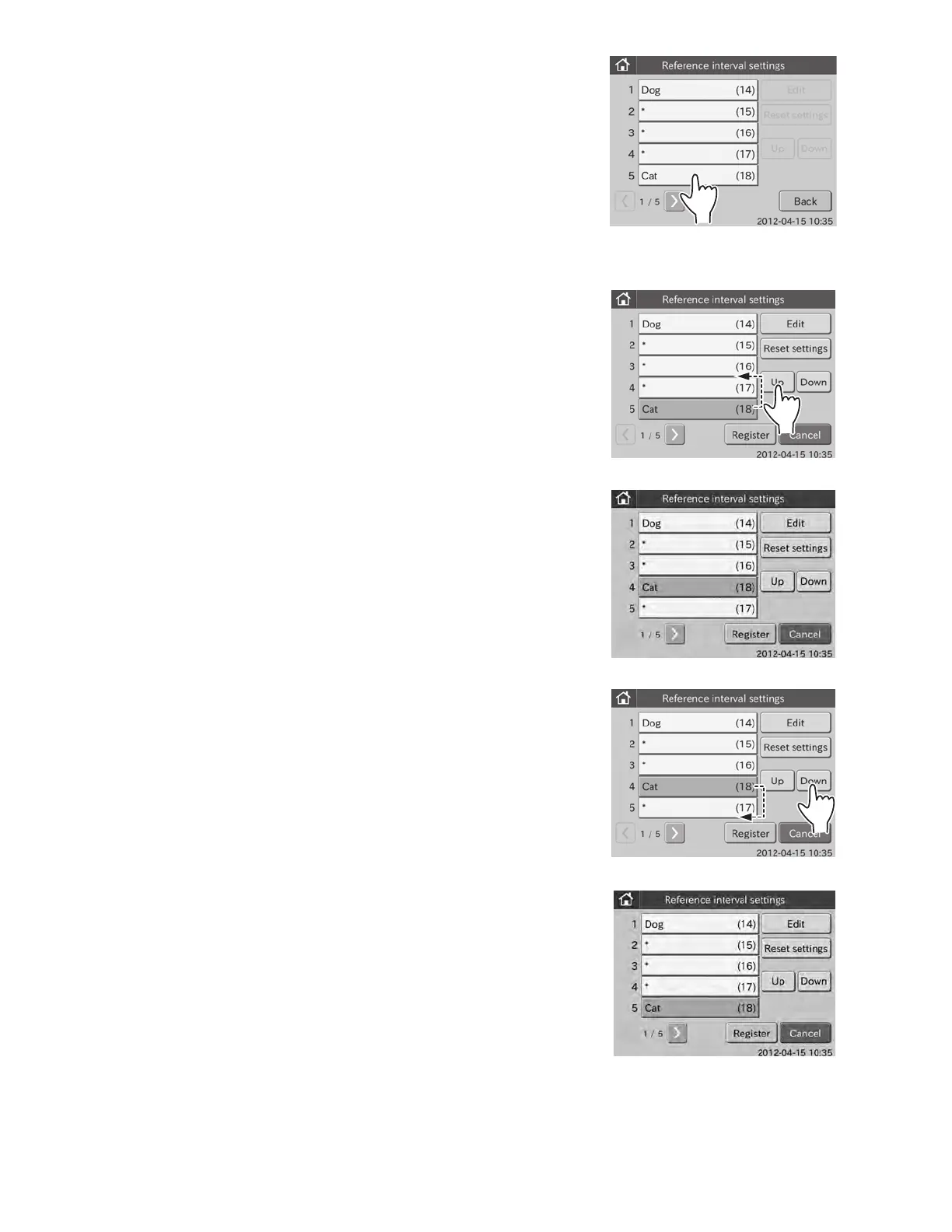 1. To change the display order of reference interval items in the