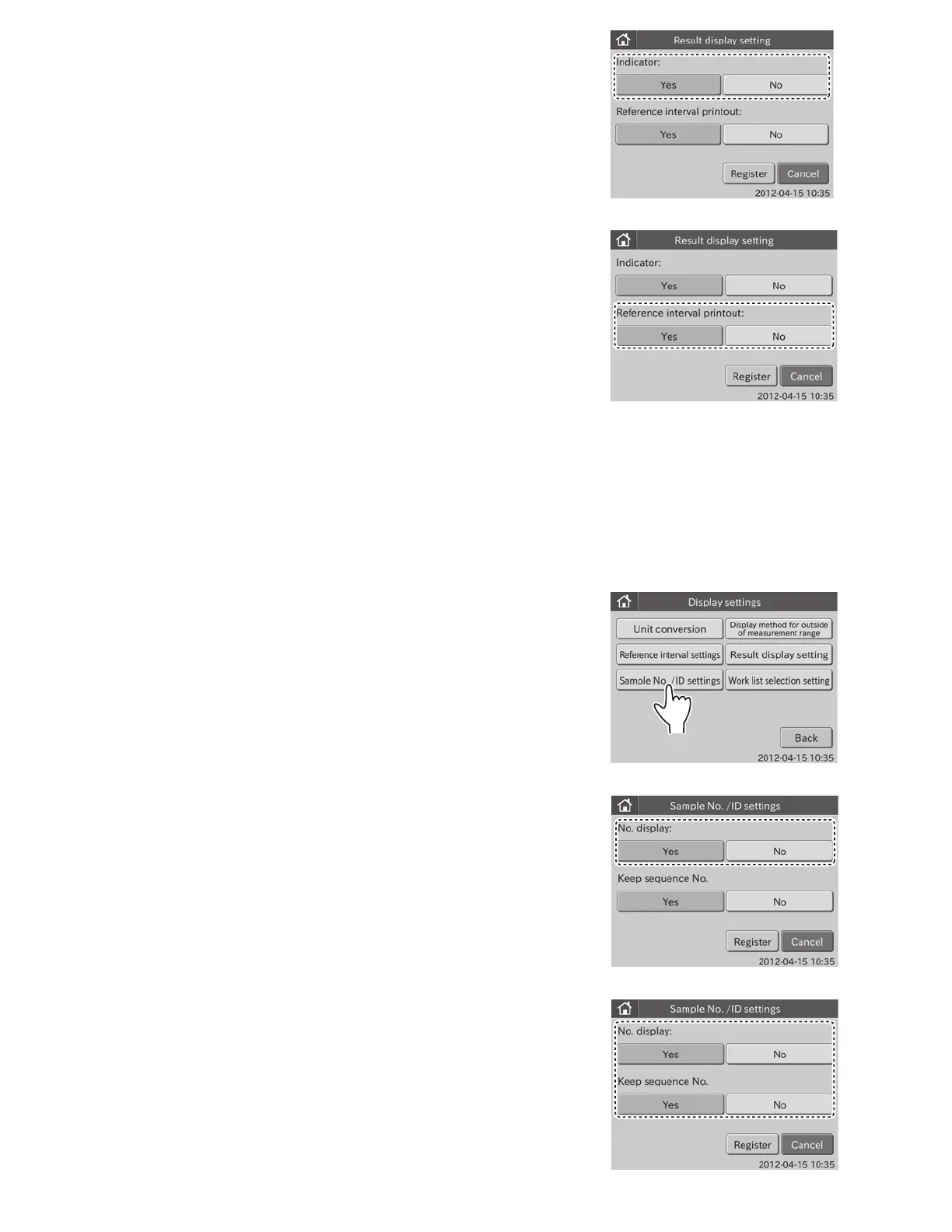 4. Touch YES or NO in the [Reference interval printout:].