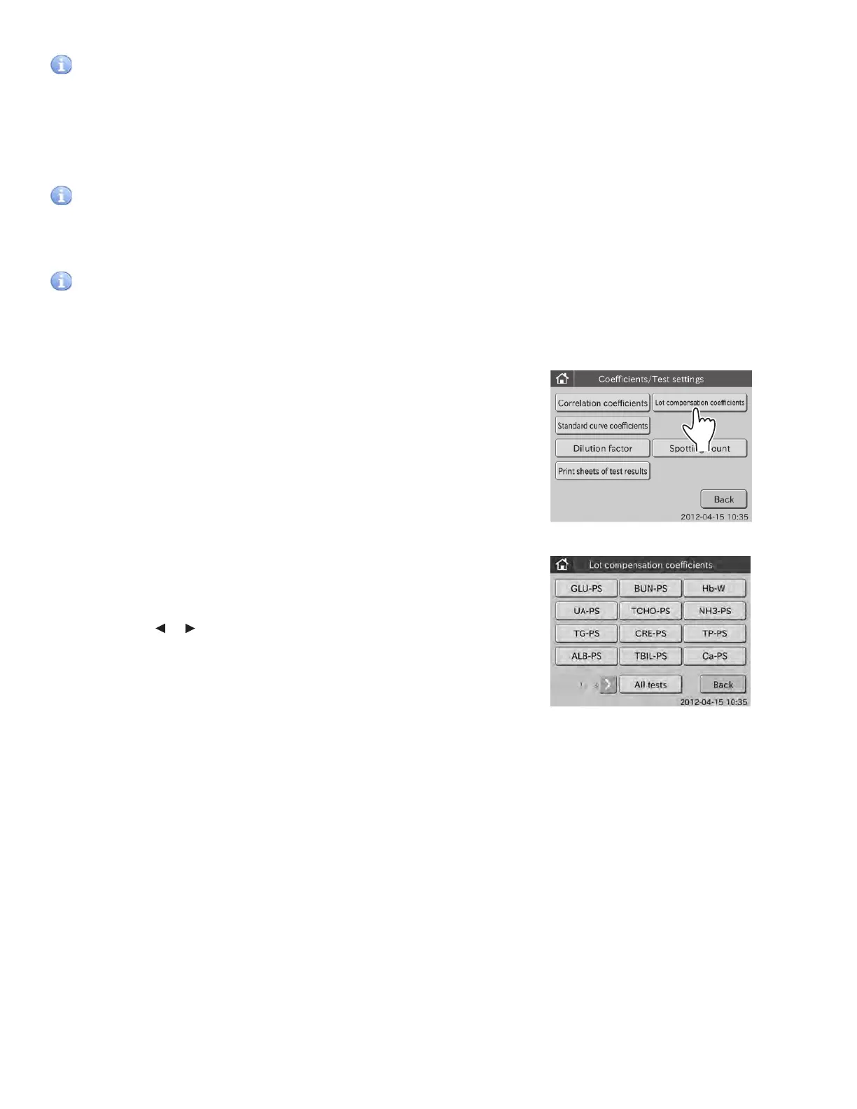 1. Touch COEFFICIENTS/TEST SETTINGS in the ADMINISTRATOR