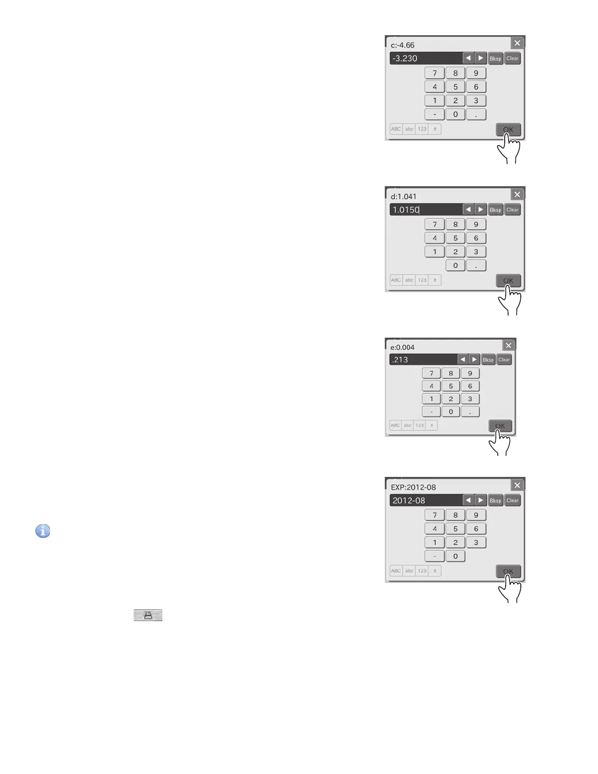 The screen keyboard to input the lot compensation coefficient