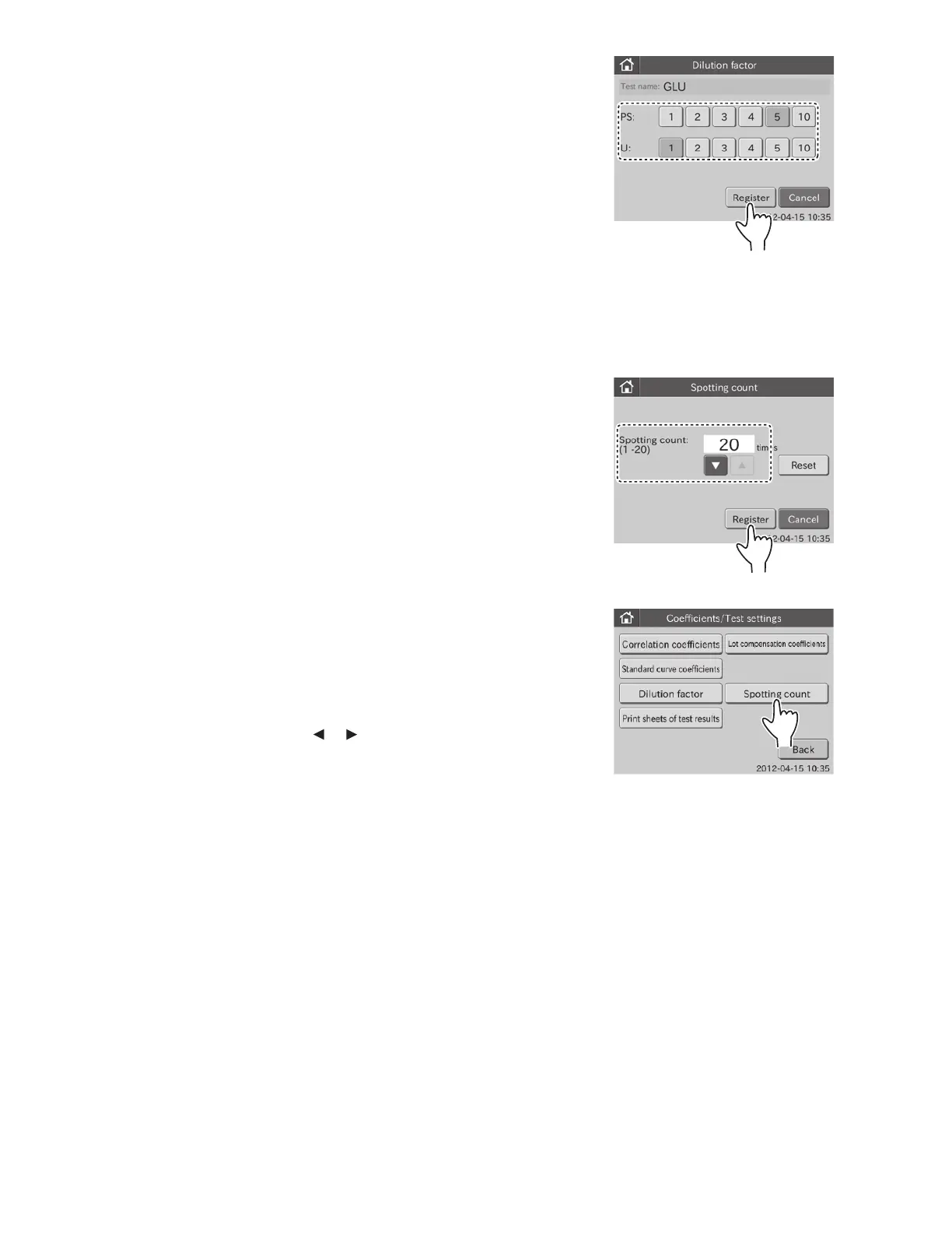 3. Specify the spotting count using or , and then touch