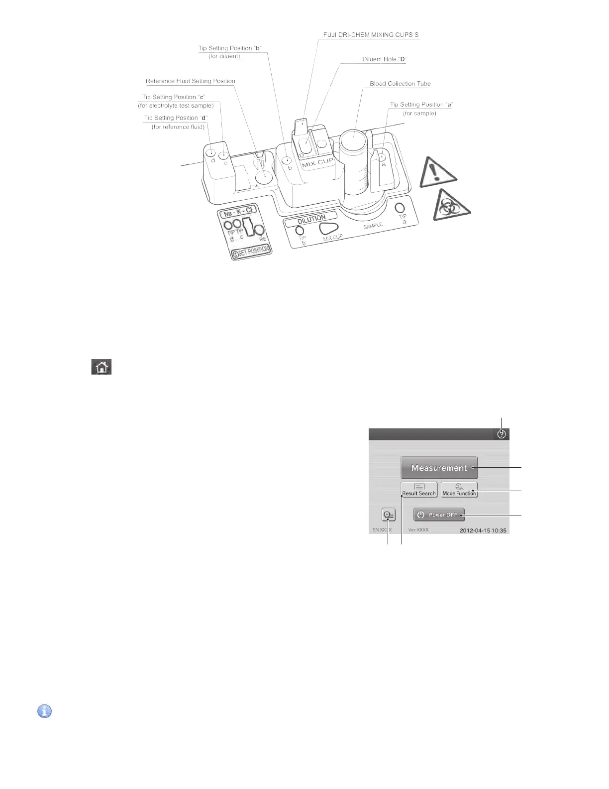 Setting, measuring operation, and confirming test results and messages of the analyzer are performed with the touch