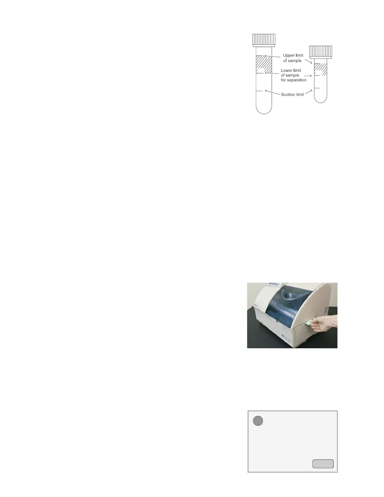 NOTE: The top surface of the sample fluid must be within the shaded section of the tubes as shown in the top-right figure.
