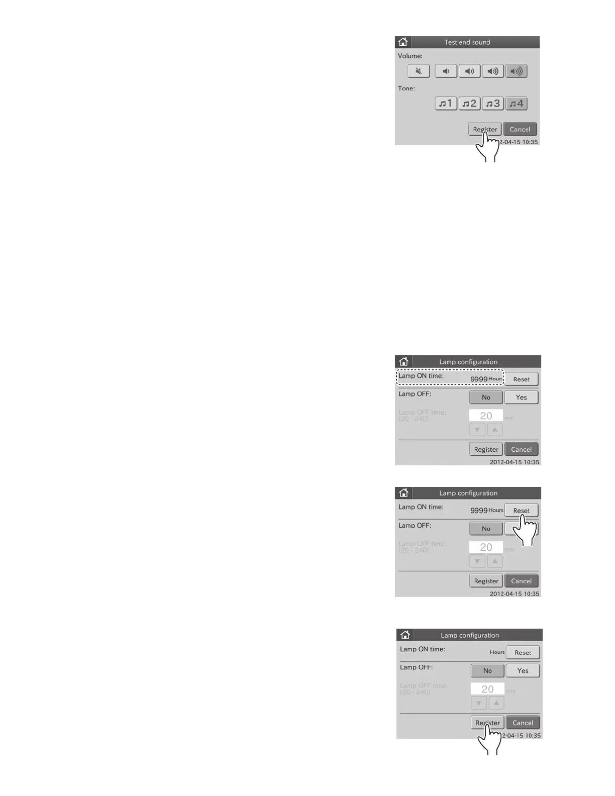 Display and reset of lamp’s cumulative illumination time: 2