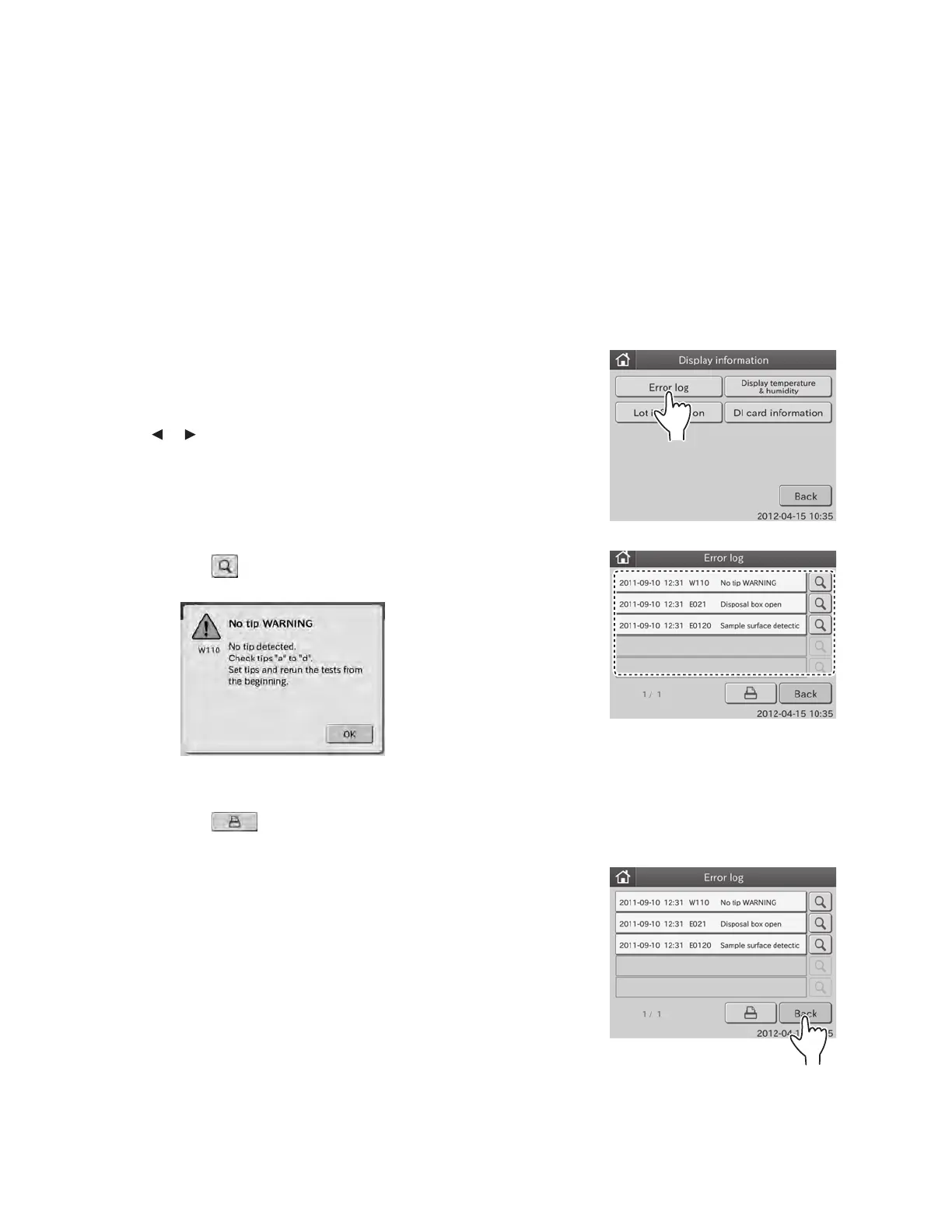 2. Touch ERROR LOG in the menu dialogue.