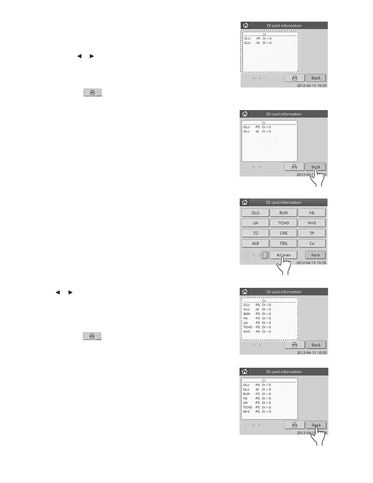 By touching or , you can see all test information.