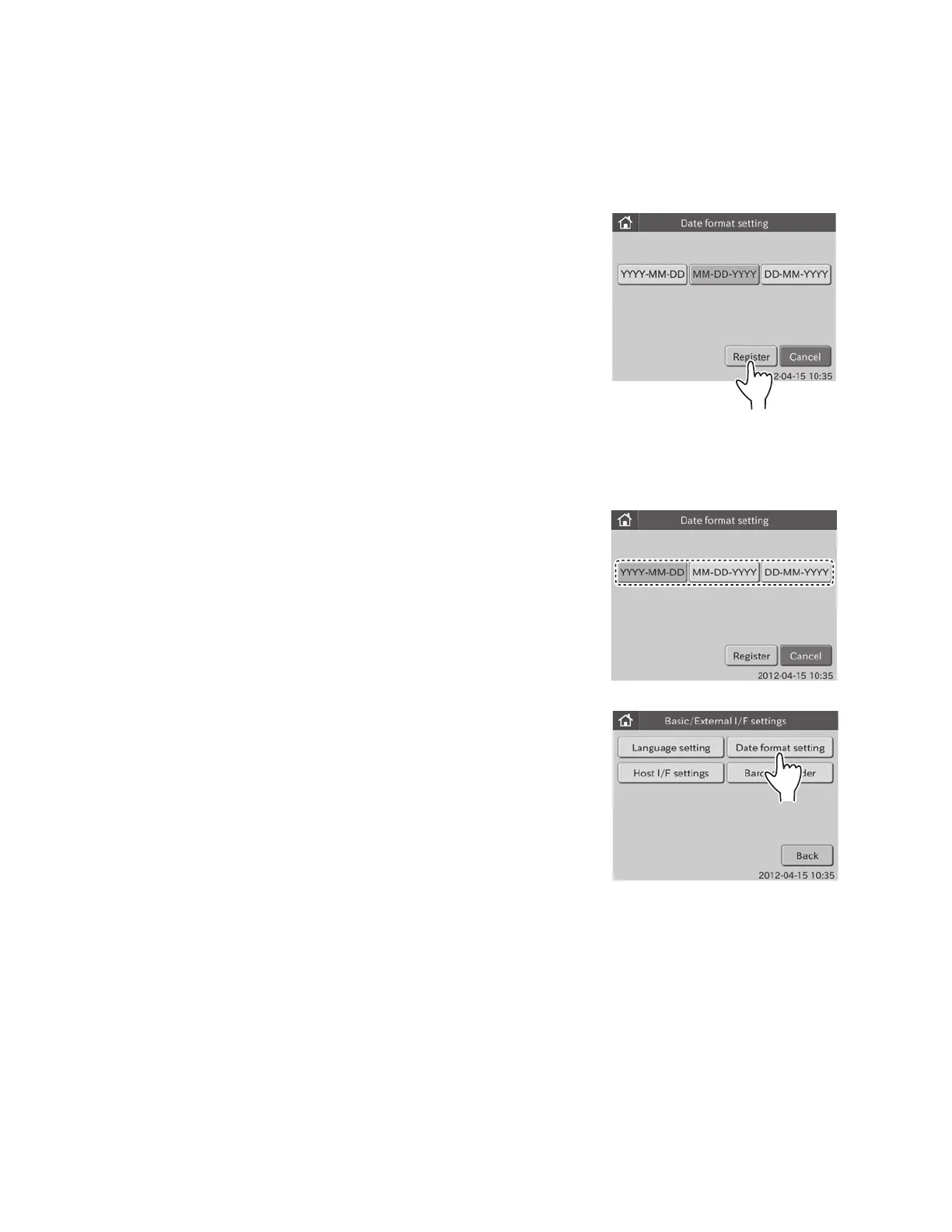 The selected date format is registered, and then the display