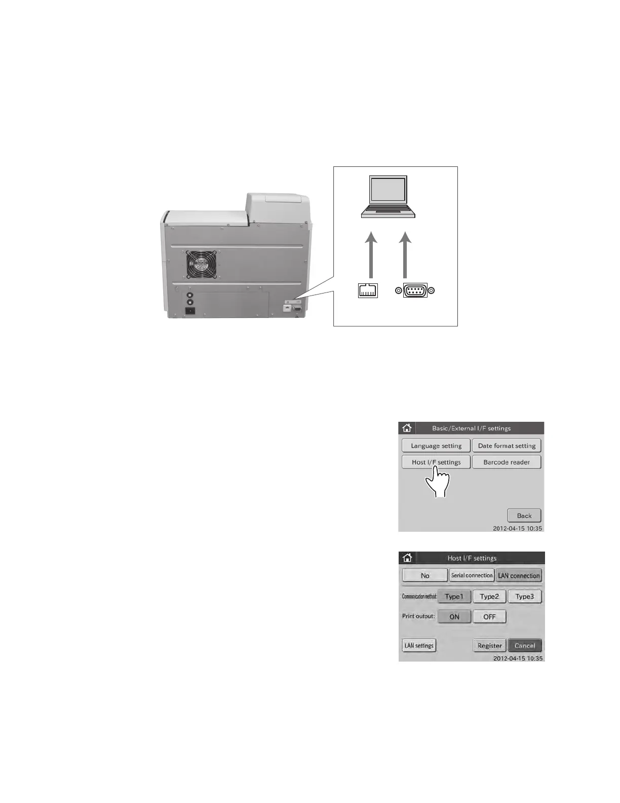 NOTE: Perform the host I/F settings after connecting the communication cable to the D−SUB 9-pins or the 100BASE−T.