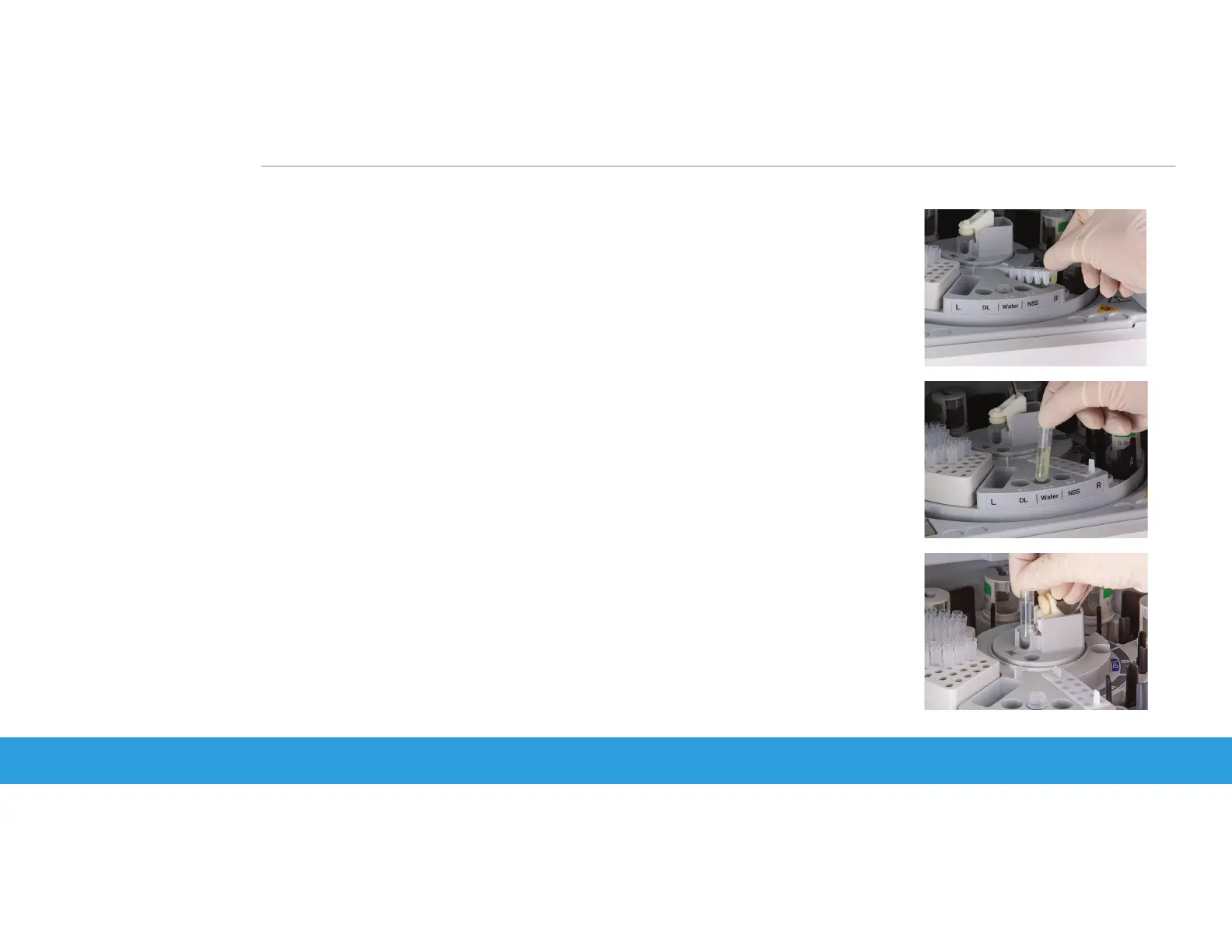 3. Place diluent tube in appropriate location (D2) labeled “Water”.
