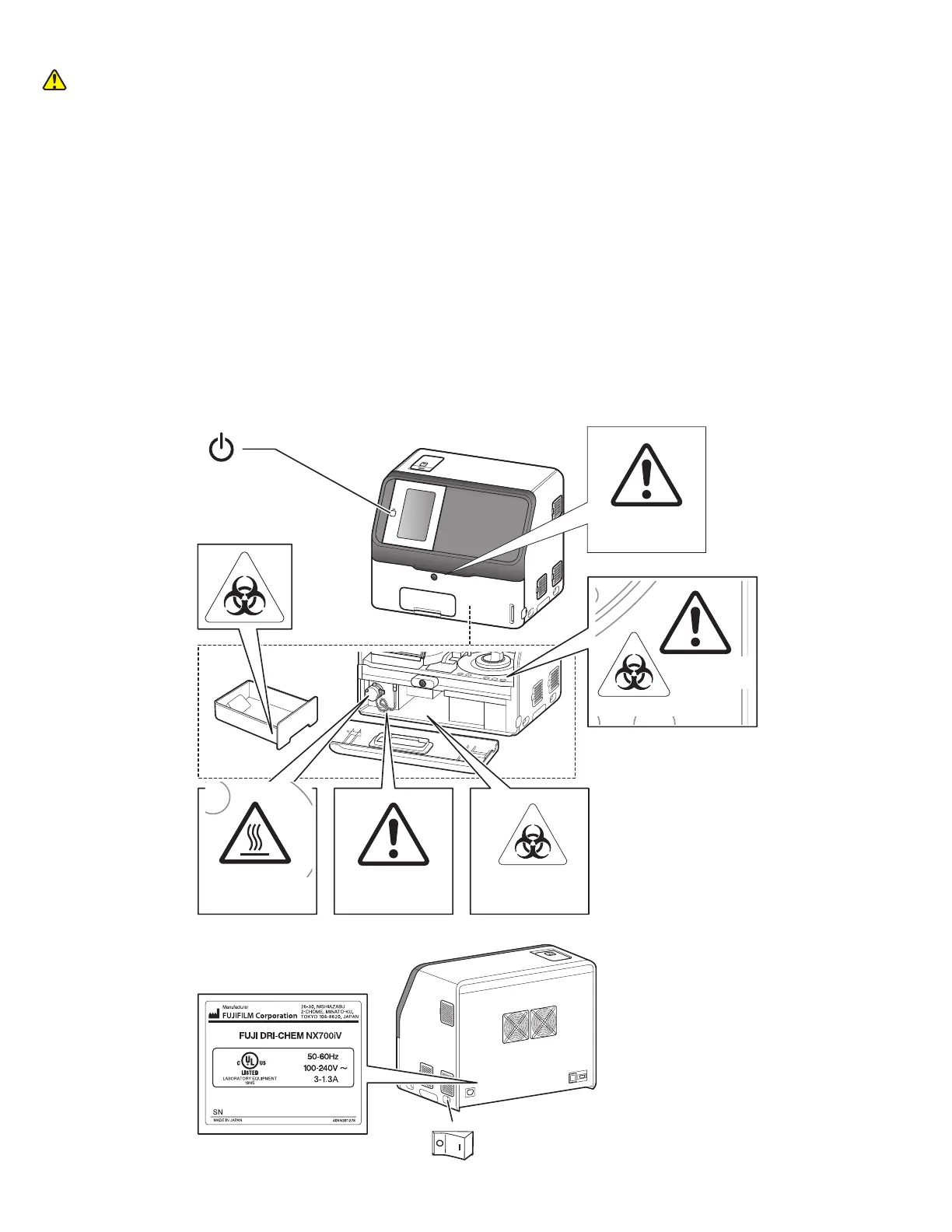 The following safety labels are affixed to the Element DC5X Analyzer.
