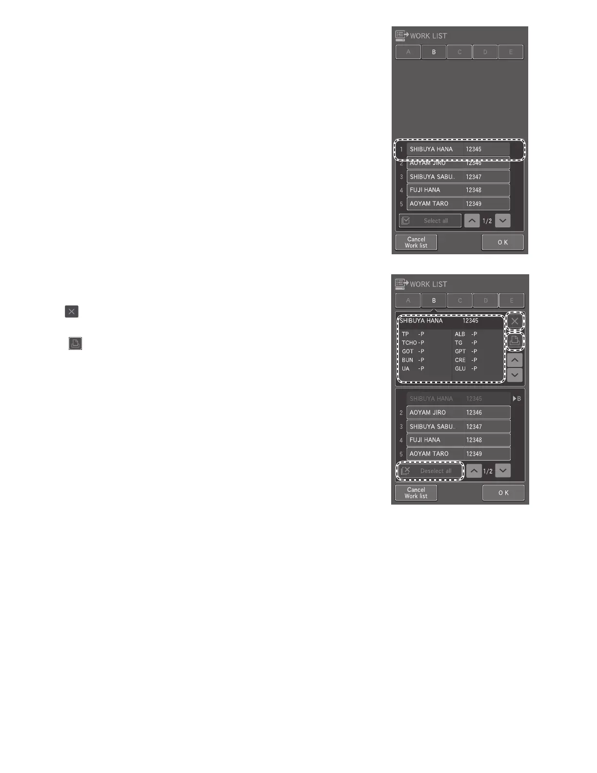 NOTE: The work list measurement items can be printed by
