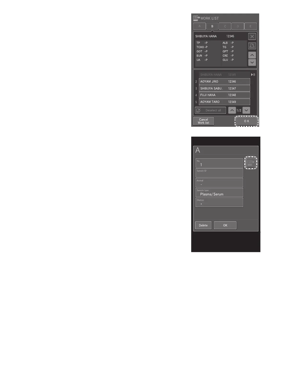 NOTE: Work lists can also be obtained from the sample